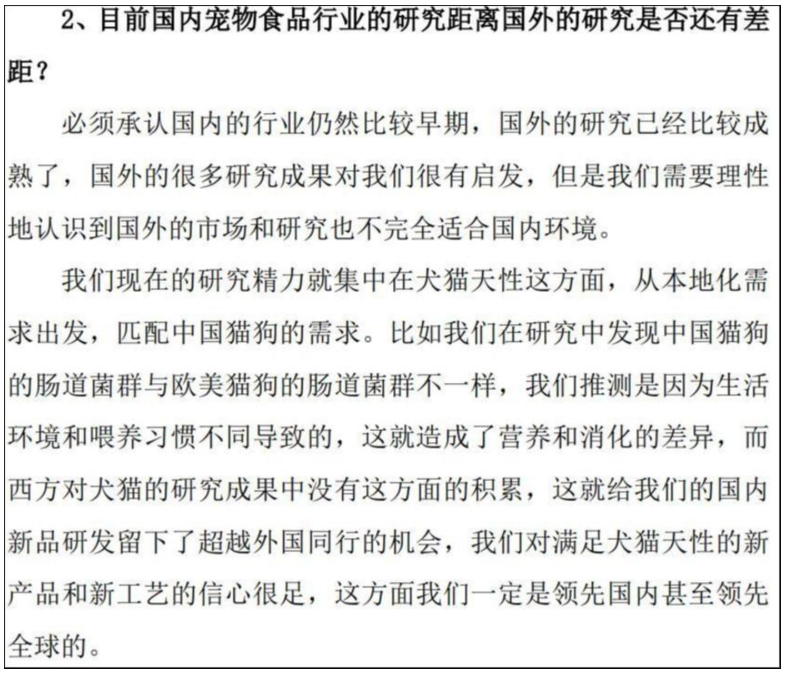 “处方粮等功能粮为高单价、高盈利、高粘性皇冠上的明珠。”中金证券今年8月发布的一份研报指出,处方粮的硬性门槛体现在研发难度与销售限制,国内企业目前尚未达到相应技术水准,竞争仍集中于通用粮、生命周期粮层面,研发投入主要聚焦于适口性、外观结构和包装,营销导向明显。